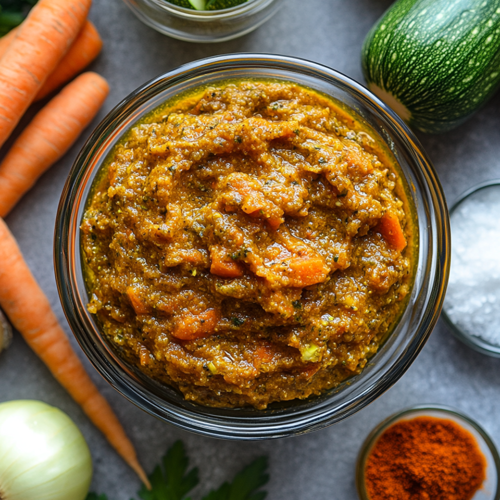Кабачки 1кг; Репчатый лук 2шт; Средняя морковь 1шт; Томатная паста 25г; соль 5г; Сахар 5г; Растительное масло 25мл.