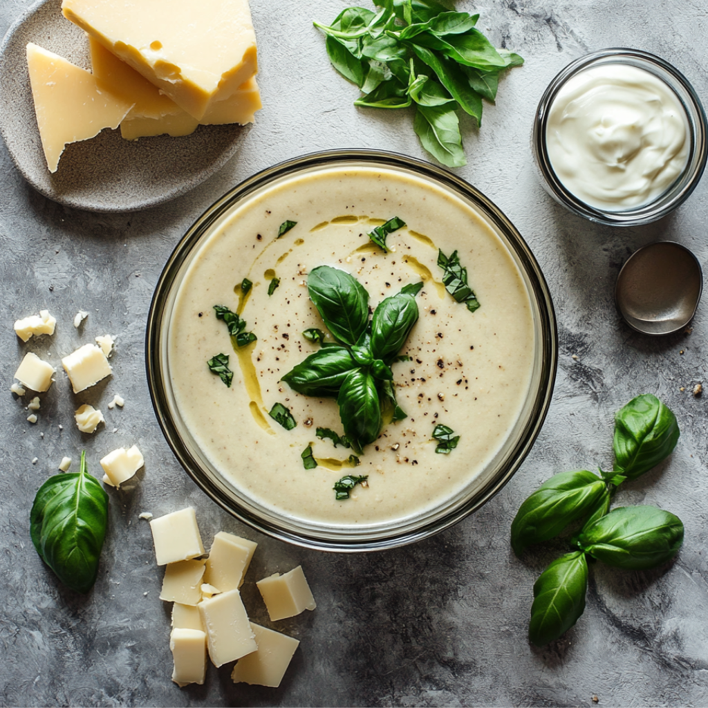 Йогурт (натуральный) 200гр.; Грецкие орехи 100гр.; Базилик 100гр.; Чеснок 2 зубч.; Перец черный молотый по вкусу; Соль по вкусу;